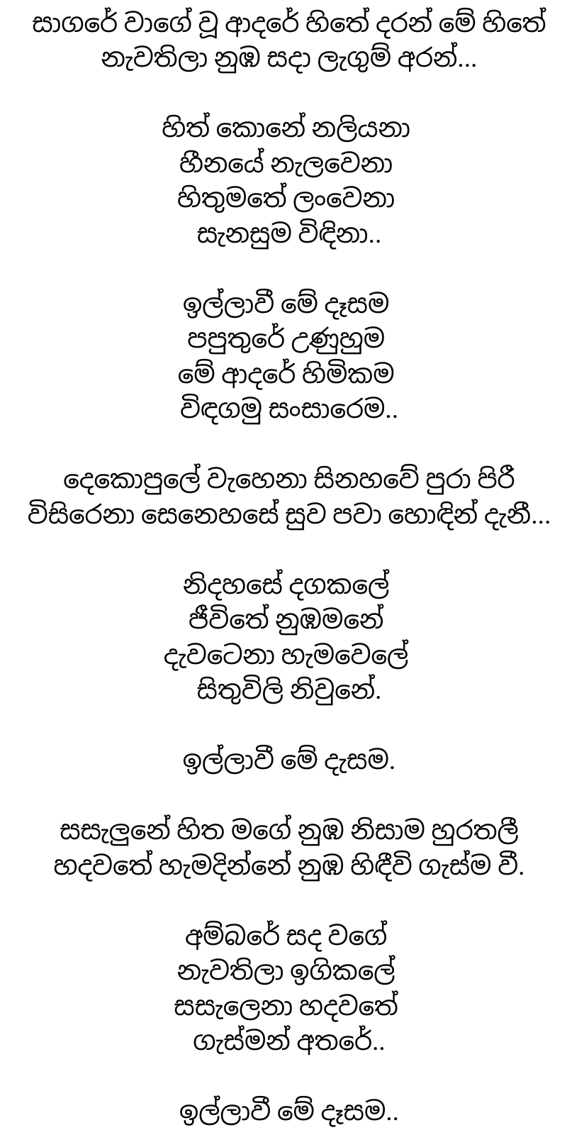 Illawi Me Dasa Lyrics